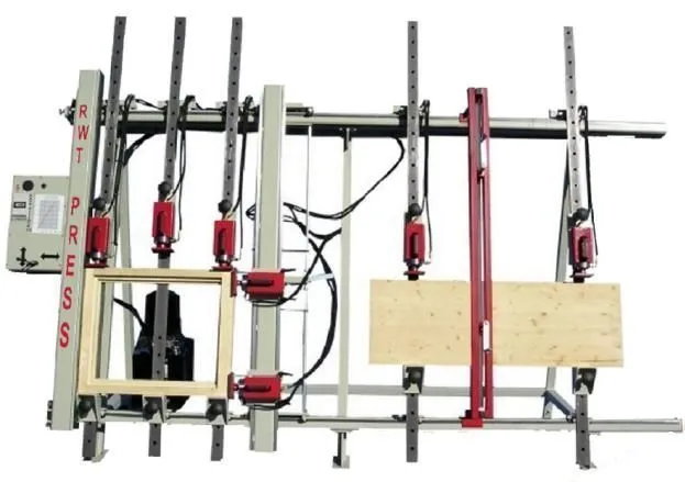 Гидравлическая вайма используется для сборки различных крупногабаритных элементов, например, балконных дверей, коробок дверных блоков и дверных полотен из дерева. Вайма RWT оснащена тремя гидравлическими цилиндрами вертикального действия и двумя горизонтальными гидроцилиндрами.