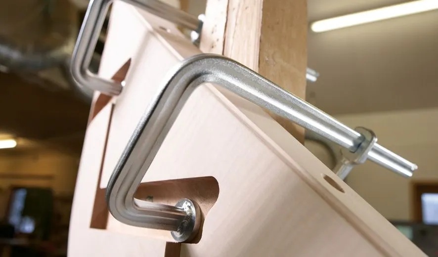 Высокоэффективная струбцина SGU с U‐образной согнутой фиксированной скобой для зажима зà препятствием без накладок.