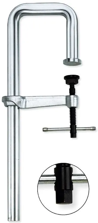 | Характеристики | Зажимное усилие до 22000 Н с моментом затяжки 80 Нм Зажимает с двух сторон по всей поверхности, особенно подходит для Т‐образных и двутавровых профилей С шестигранником 19 мм на конце винта Долгий срок службы благодаря наличию специальной прижимной огнеупорной пластины со вставкой из металлокерамики, наклоняемой под углом до 35° |