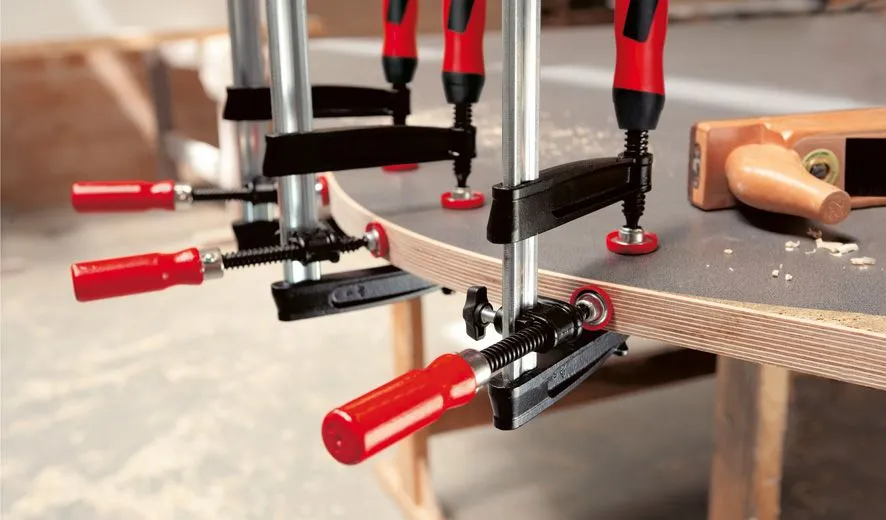 | Характеристики | Практичный вспомогательный инструмент для зажима кромок в труднодоступных местах Подходит для обычных струбцин с максимальной толщиной шины 13 мм |