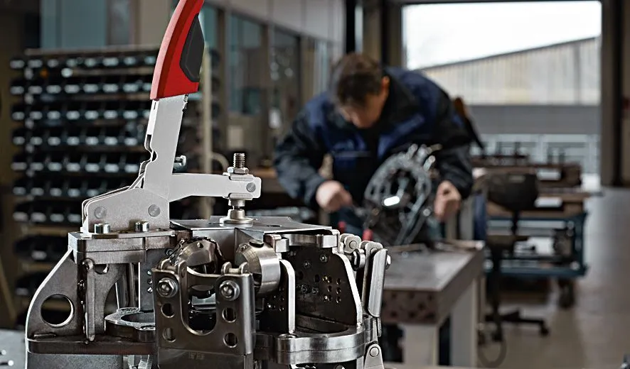 | Характеристики | В рабочем положении рычаг зажима располагается вертикально Автоматическая плавная настройка высоты зажима 35 мм при примерно одинаковом усилии зажима — без изменения положения прижимного винта вручную Регулируемое усилие зажима до 2500 Н в зависимости от положения установочного винта в шарнире Прочные улучшенные стальные пластины с продолжительным сроком службы Рисунок отверстий в основании подходит для метрической и дюймовой системы Высококачественная маслостойкая двухкомпонентная пластмассовая ручка |