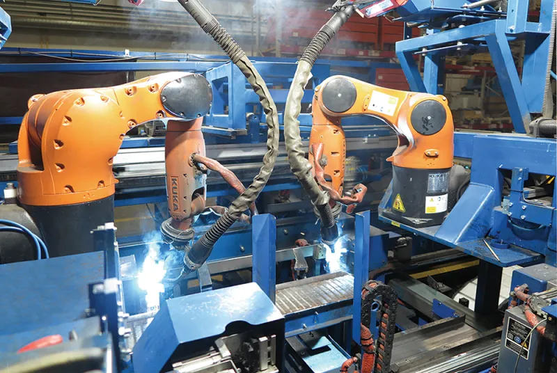 Комплекс предназначен для приварки кронштейнов к профилю и встроен в автоматическую линию профилирования, не имеет аналогов по сложности среди разработанных и произведенных в России. Комплекс позволяет сваривать 30 конфигураций балок (разных по высоте, толщине металла и типу кронштейна) и имеет бесступенчатую регулировку по длине балки от 500мм до 2700мм. Переналадка комплекса происходит в автоматическом режиме с панели оператора. Производительность комплекса составляет менее 13 секунд на 1 балку. Для обеспечения работы и быстрой переналадки в комплексе используется более 50 пневмоцилиндров, 13 сервомоторов (2 робота по 6 моторов и привод захвата балки) и 7 асинхронных моторов.