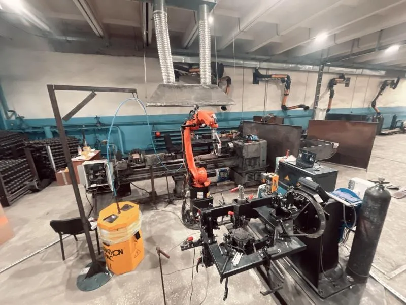 Роботизированный комплекс с двумя рабочими местами для сварки разных типов изделий заказчика.