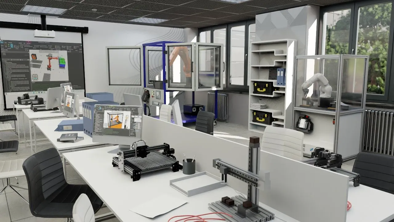 Обучающая лаборатория по промышленной робототехнике также предлагает соответствующие программы обучения и курсы для студентов и профессионалов, включая теоретические лекции, практические занятия и проектную работу. Она