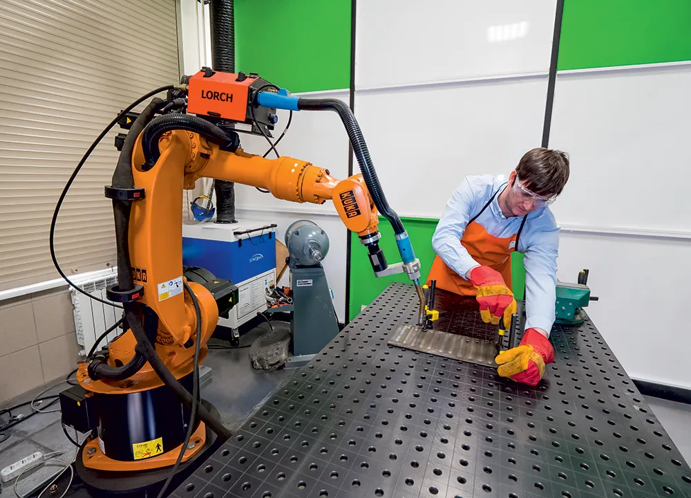 - Ячейка по отработке технологии роботизированной сварки (Робот KUKA KR 6-2, сварочное оборудование с источником Lorch S3 StandardPulse, сборочно-сварочный стол Siegmund, универсальная сварочная оснастка Siegmund, станция очистки горелки, передвижное вытяжное устройство SWELDEX basic, система безопасности)