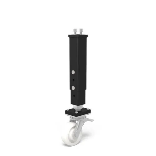 Опора, регулируемая по высоте с роликом и стопором обладает несущей способностью 800 кг и тонкой регулировкой высоты 20 мм.