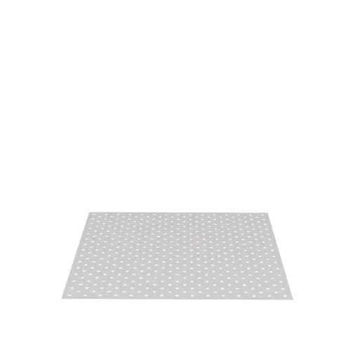Перфорированный алюминиевый лист специально разработан для работы с нержавеющей сталью. Перфорированный лист отделяет черный металл от нержавеющей стали. Благодаря совпадению сетки отверстий образует точный настил. Изготовление листа с координатными линиями из нержавеющей стали - по запросу.