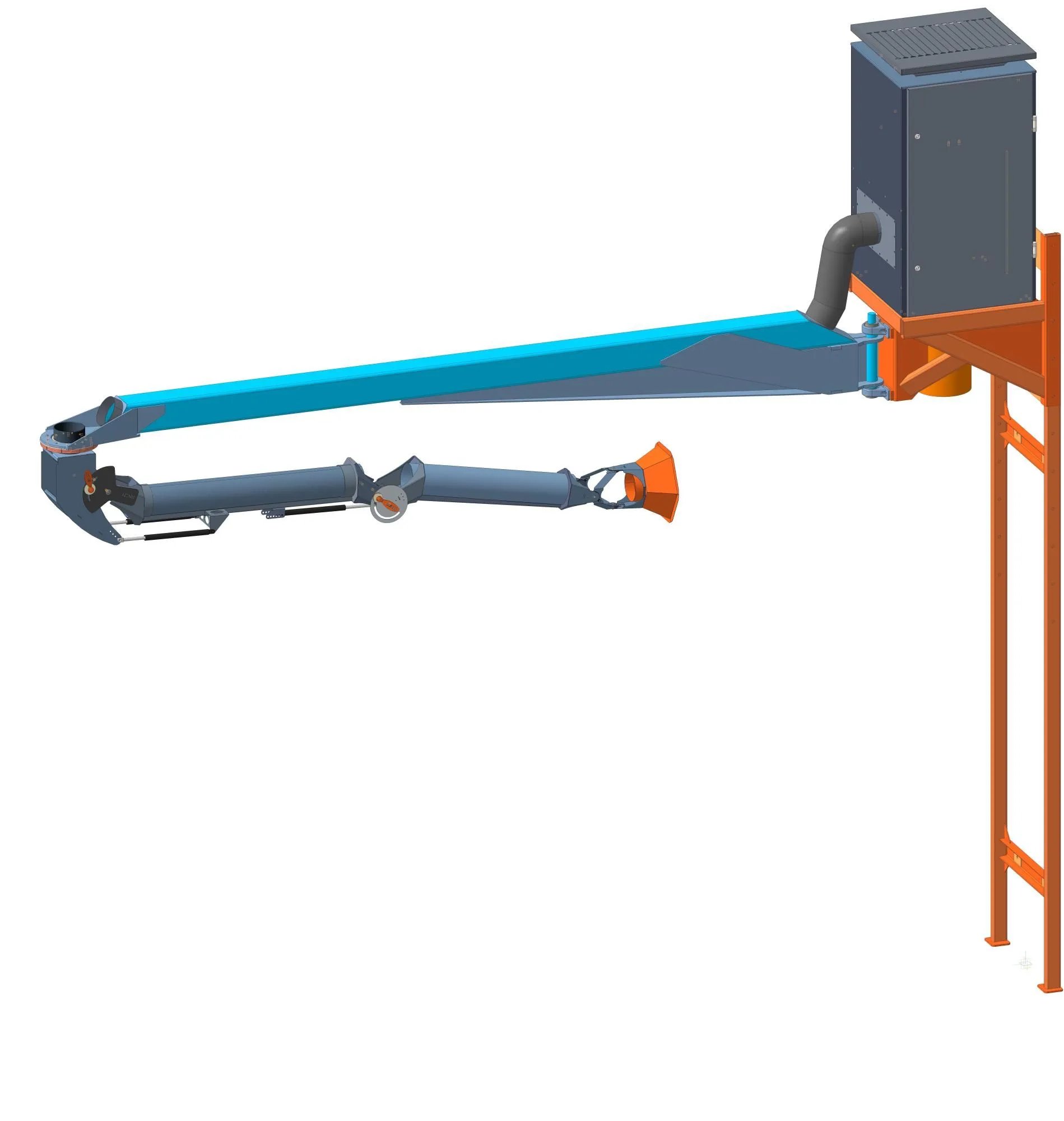 Вентиляционно-аспирационная установка модульного типа "КАМА 1500 Н" (ВАУ МТ "КАМА 1500 Н") представляет собой компактную навесную аспирационную установку с опорной рамой. Модель может комплектоваться двумя гибкими вытяжными устройствами радиусом действия 3/5/7 метров (5 и 7 метров – консольного типа).