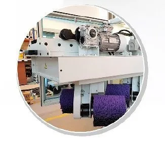 Вращающаяся карусель с 4 абразивными щетками; 2 вращающихся по часовой стрелке и 2 вращающихся против часовой стрелки для равномерного снятия заусенцев и закругления кромок лазерно-плазменной резки, штамповки и механической обработки деталей во всех направлениях. Обработка различных толщин заготовок одновременно (разница до 5 мм) в одной простой установке. Плоские детали, а также детали с выступами и поверхностными формами на верхней и/или нижней гранях детали. Мелкие детали от 100 мм и выше удерживаются стандартным вакуумным столом.