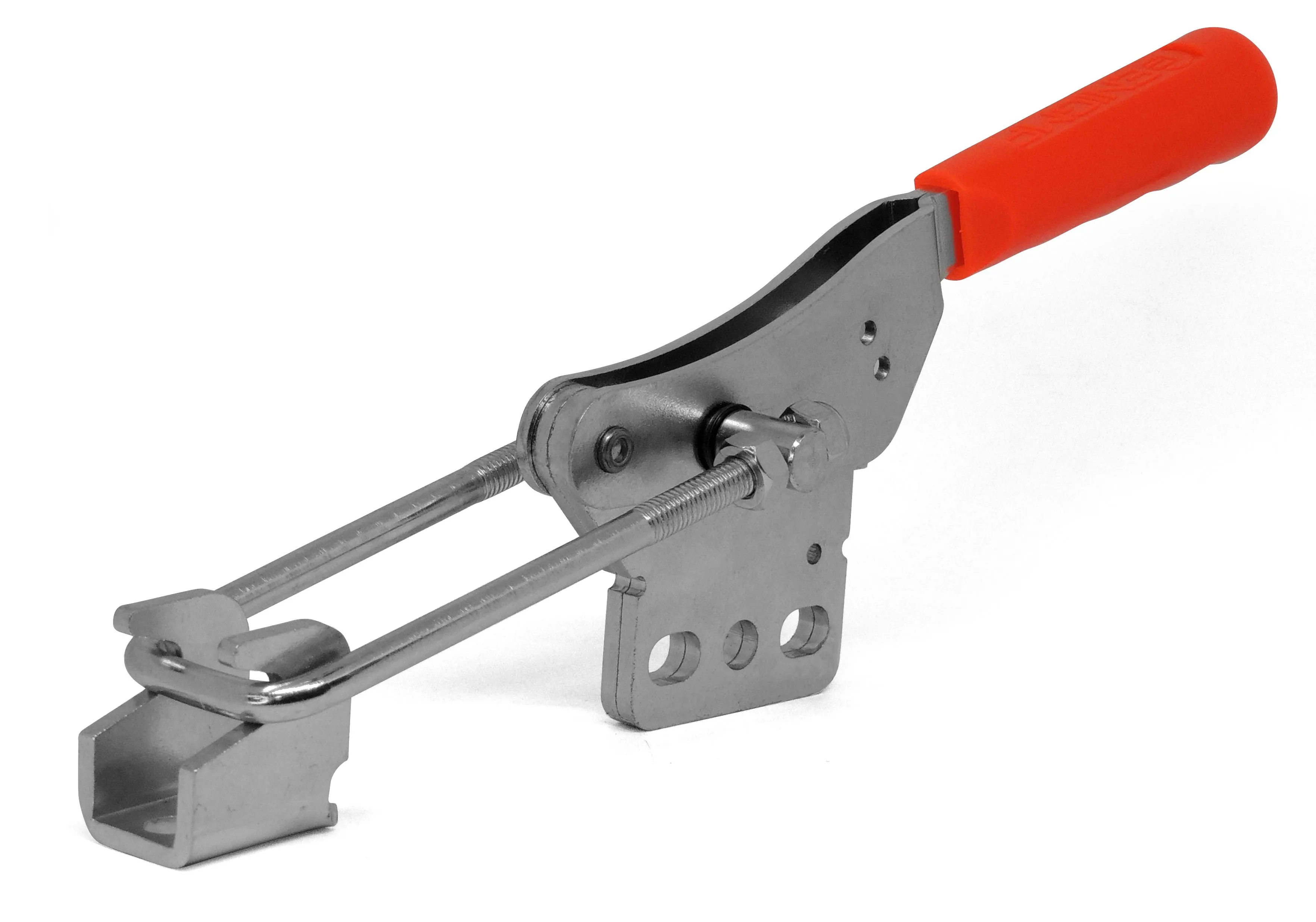 Зажимы с горизонтальной защелкой и U-образным крючком имеют тяговое движение. Серия D может быть установлена с вертикальным основанием. Регулируемое рабочее расстояние U-образного крюка (ход). Зажимы этого типа обычно используются для закрытия крышек и дверей машин. в измерительных лабораториях возможно изготовление черного цвета по запросу.