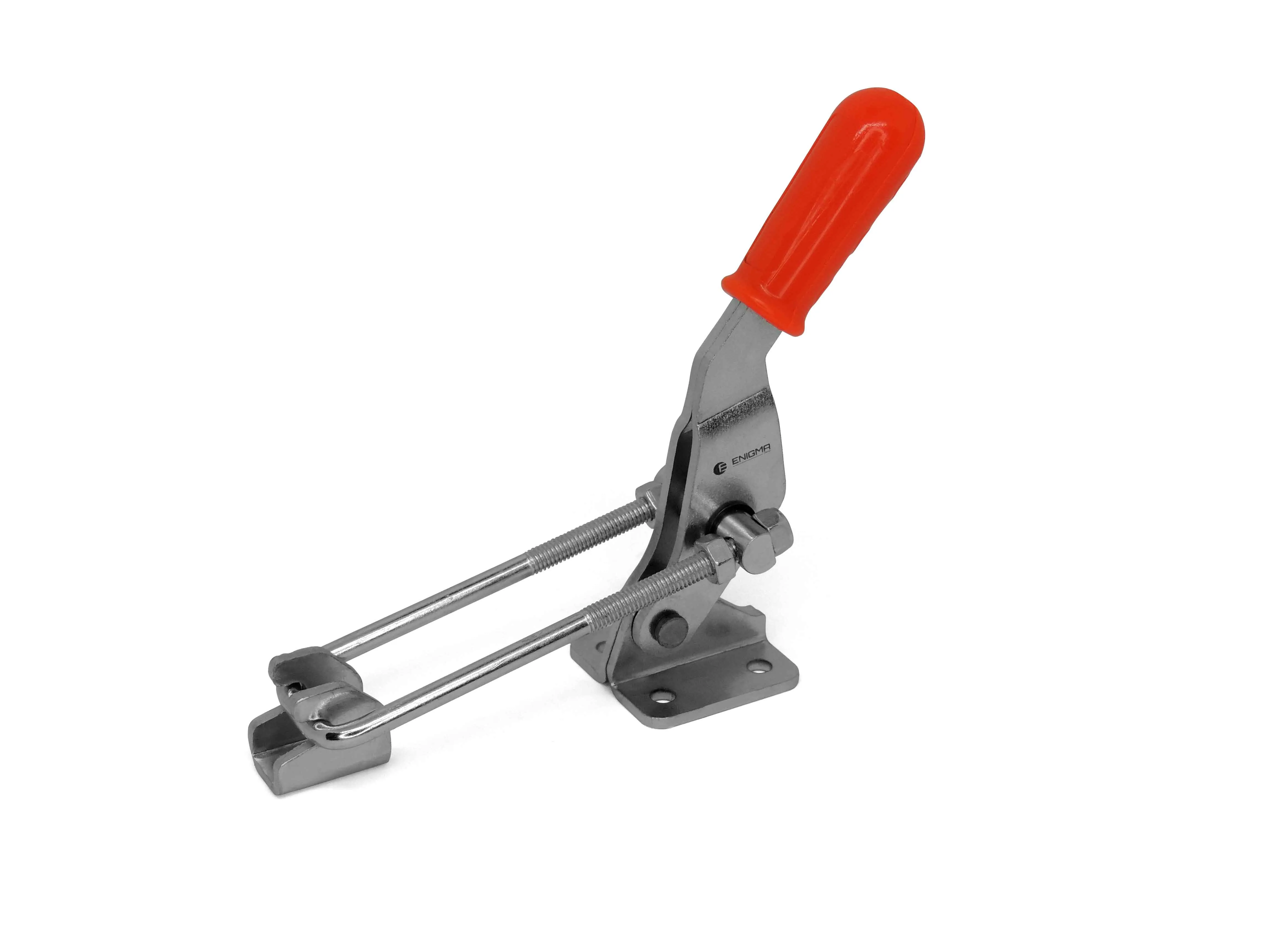 Зажимы с горизонтальной защелкой и U-образным крючком имеют тяговое движение. Серия Y может быть установлена с горизонтальным основанием. Регулируемое рабочее расстояние U-образного крюка (ход). Зажимы этого типа обычно используются для закрытия крышек и дверей машин. в измерительных лабораториях возможно изготовление черного цвета по запросу.