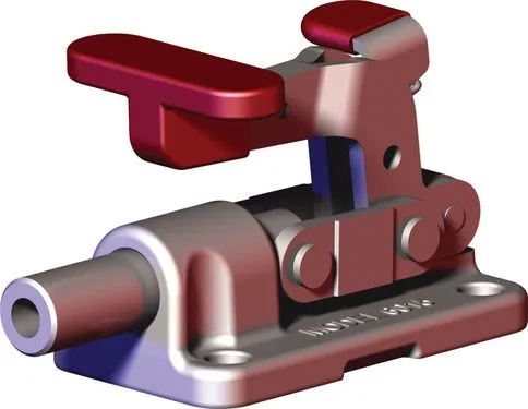 Серия 6015 Дестако Зажимы прямого действия являются наименьшей из прочной основы Зажимы прямого действия. Они имеют компактную конструкцию в сочетании с высокой удерживающей способностью и позволяют рукоятке опускаться ниже монтажной плоскости для фиксации в задвинутом положении. Обычно эти зажимы используются для сборки, проверки приспособлений и устройств натяжения.
