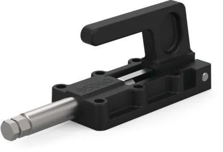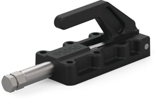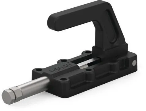Зажимы прямого действия Destaco серии 95030, 95040, 95050 и 95060 отличаются низким профилем, высокой удерживающей способностью и основанием / ручкой из литой стали. Эти конструкции позволяют ручке поворачиваться и опускаться ниже монтажной плоскости для фиксации во втянутом положении. Обычно эти модели применяются в сборочных, испытательных и натяжных устройствах.