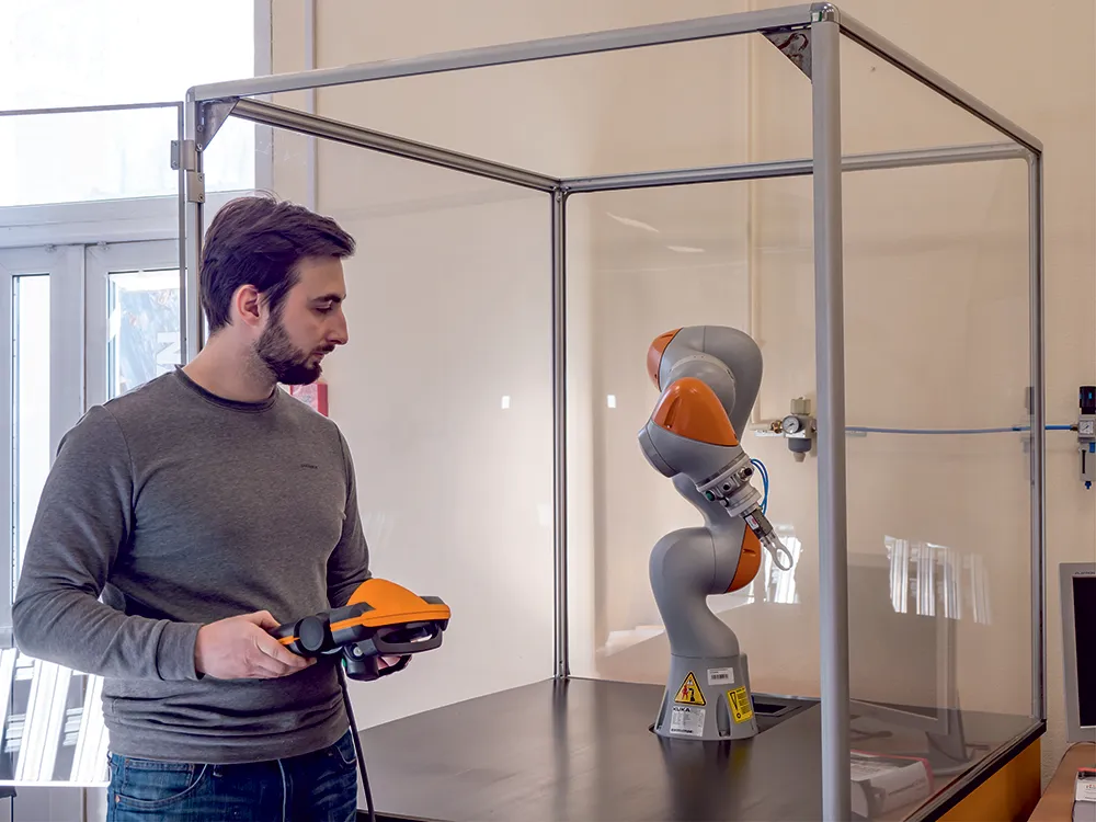 - Ячейка по изучению и программированию коллаборативного робота (робот KUKA LBR IIWA 7 R800, мобильная робототехника KUKA youBot - KUKA youBot предлагает исследователям, учащимся и студентам, а так же исследовательско-конструкторским отделам промышленности, аппаратную базу для проведения экспериментов и применения знаний к другим случаям использования. Таким образом, с помощью KUKA youBot в малом масштабе можно проводить исследования по крупным темам фабрики будущего на пути к industrie 4.0 В комплекте с ячейками была поставлена программа KUKA Sim.Pro для оффлайн программирования промышленных роботов KUKA.