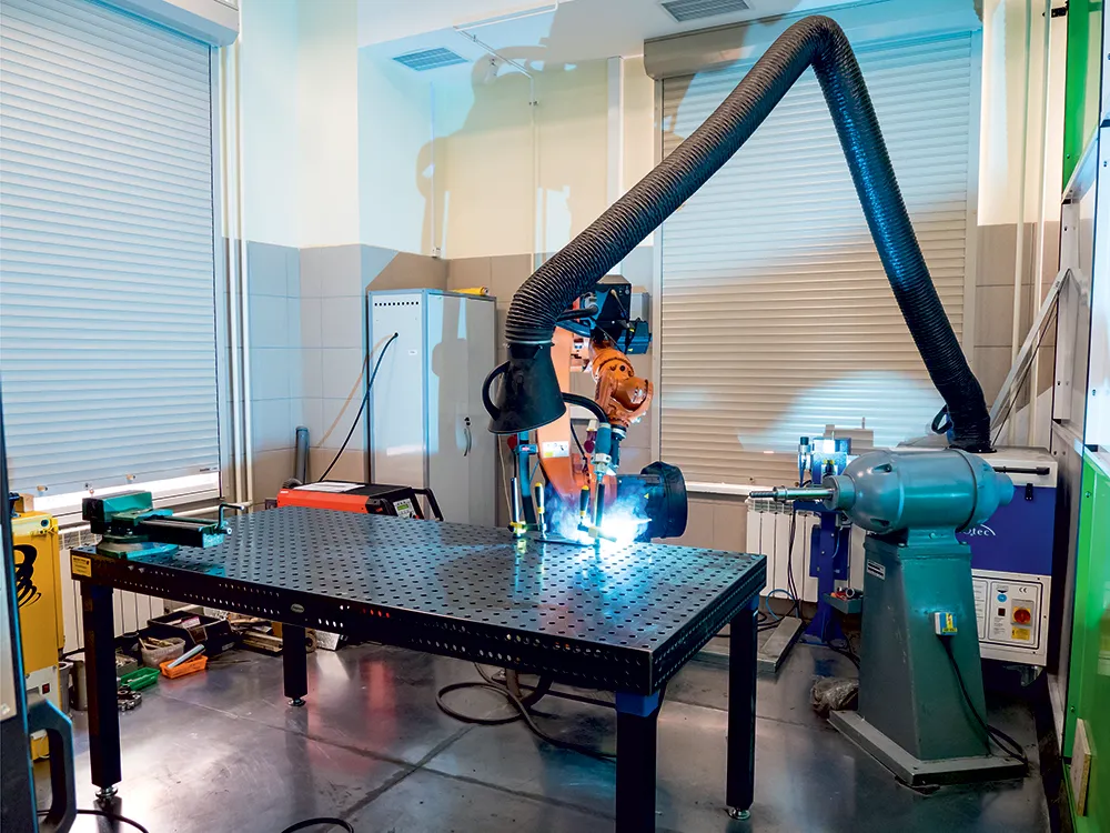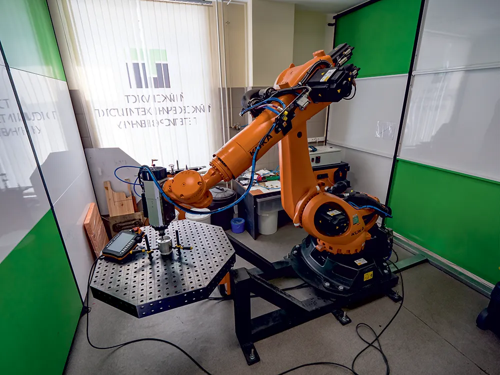 - Ячейка по отработке технологии роботизированной сварки (Робот KUKA KR 6-2, сварочное оборудование с источником Lorch S3 StandardPulse, сборочно-сварочный стол Siegmund, универсальная сварочная оснастка Siegmund, станция очистки горелки, передвижное вытяжное устройство SWELDEX basic, система безопасности)