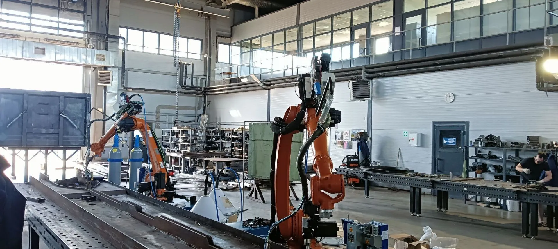 Данный роботизированный сварочный комплекс используется для сварки лонжеронов длинной до 9 метров.