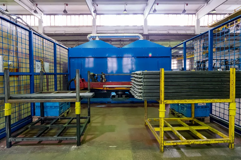 На действующее производство был установлен универсальный роботизированный сварочный комплекс с полностью автоматизированным кондуктором. Комплекс может сваривать оси для прицепов двумя видами конструкций: под рессорную подвеску, резиножгутовую подвеску. Ширина свариваемых осей от 850мм до 2300мм. Используемое оборудование: KUKA KR6R1820 Cybertech nano, позиционер KUKA KP3-V2H, сварочный аппарат для роботизированной сварки OTC M400L, два полностью автоматических кондуктора и полностью герметичная кабина для технологической зоны производства ВЕКТОР ГРУПП, система промышленной вентиляции ULMATEC, система управления и безопасности на основе компонентов Siemens.