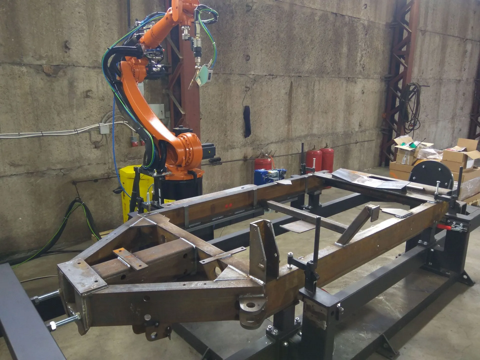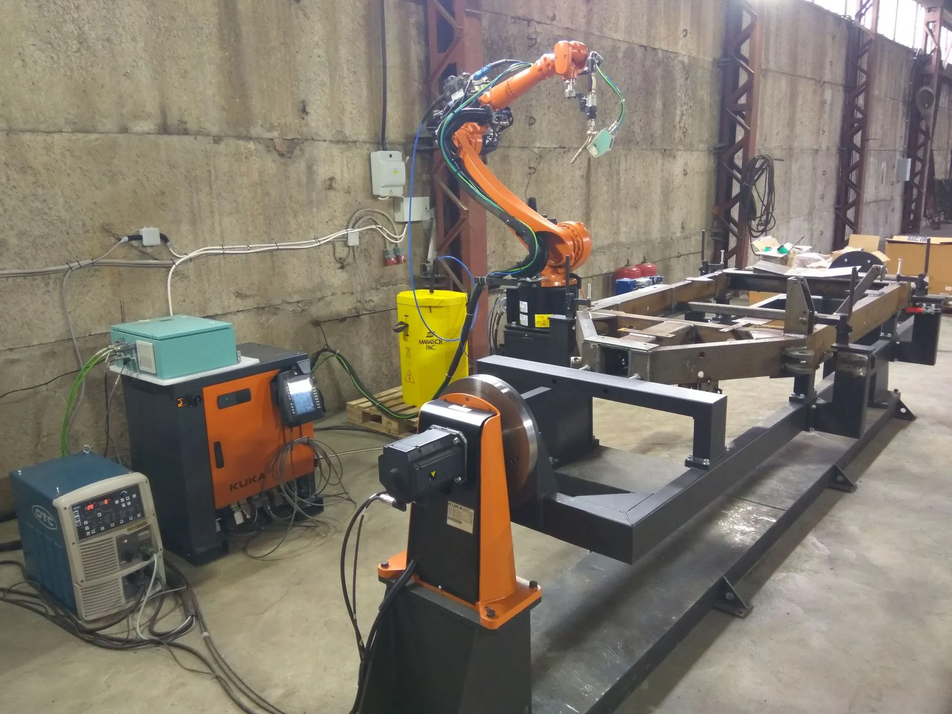 Для сварки рам сельхозоборудования использован комплекс на базе робота KUKA KR8r2010, позиционера KUKA KP1MD500, а также сварочного оборудования для роботизированной сварки OTC Daichen.