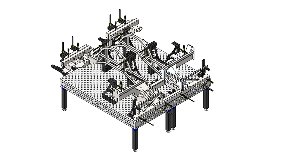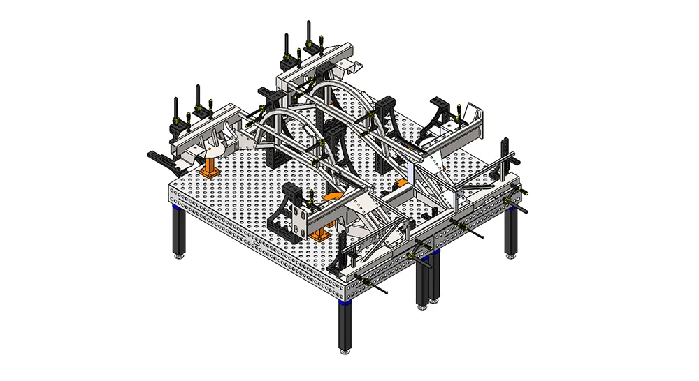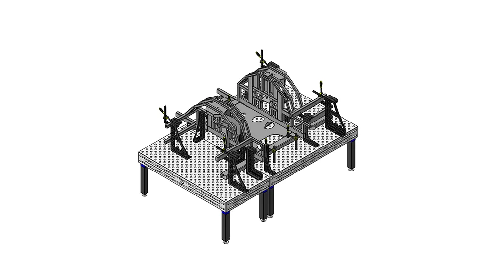 Сборка кузовов различных крупногабаритных автомобилей – одна из частых задач которую решают на сборочно-сварочных столах и оснастке Siegmund. Данные решения применяются как на этапе прототипов автомобилей, так и при производстве серий. Модульность системы позволяет работать с машинами любых габаритов. В проекте использованы столы и оснастка 28 системы