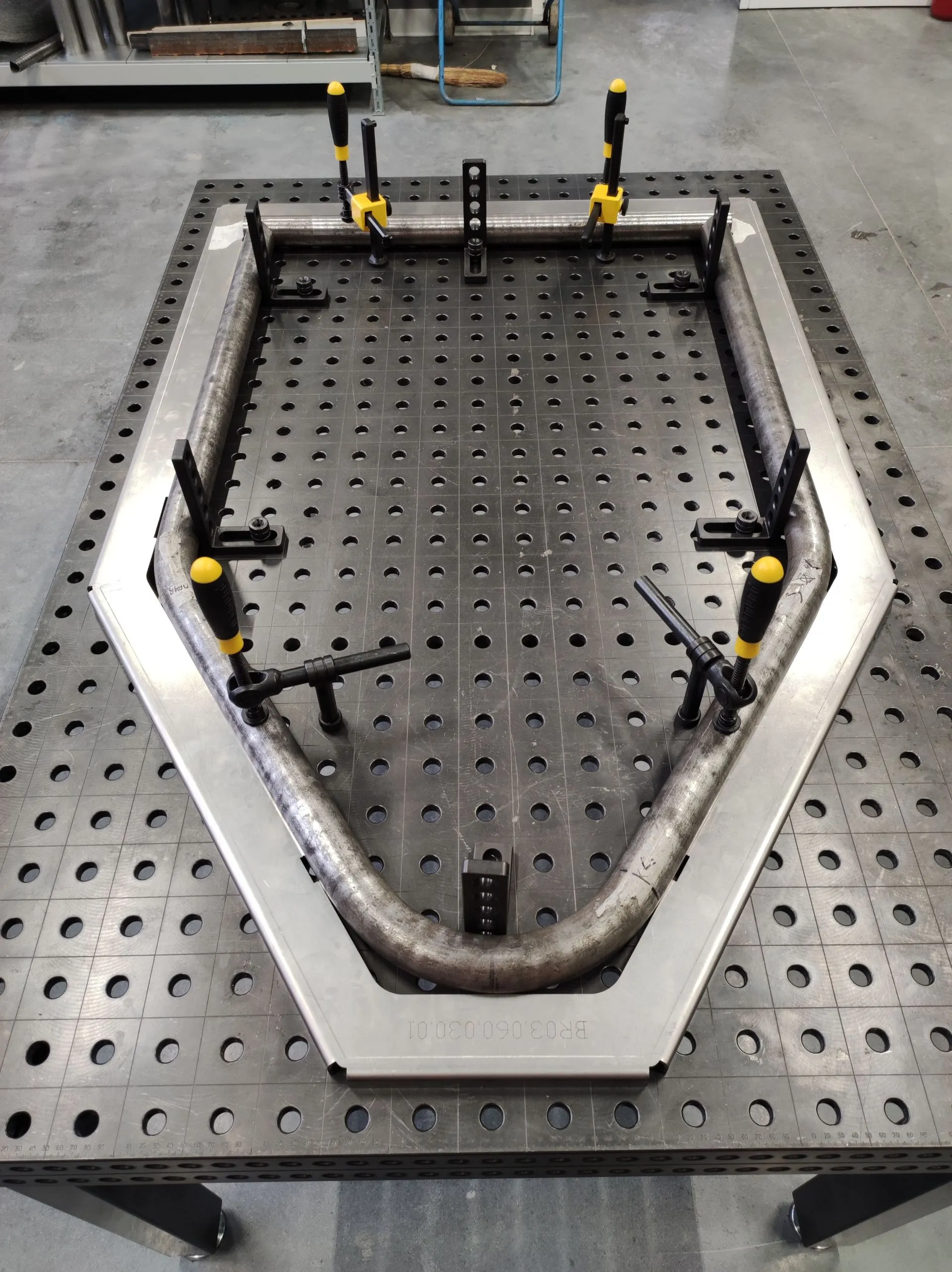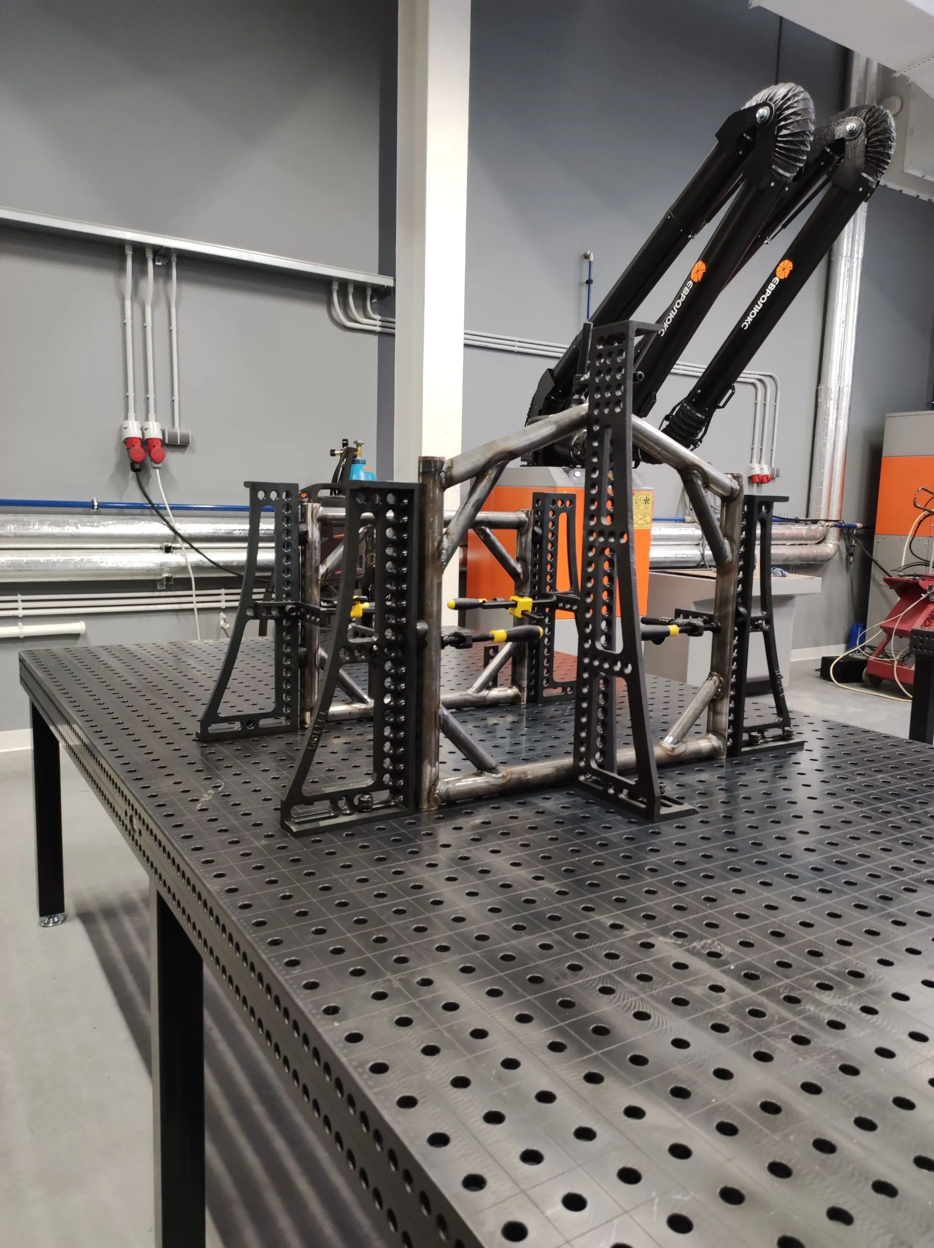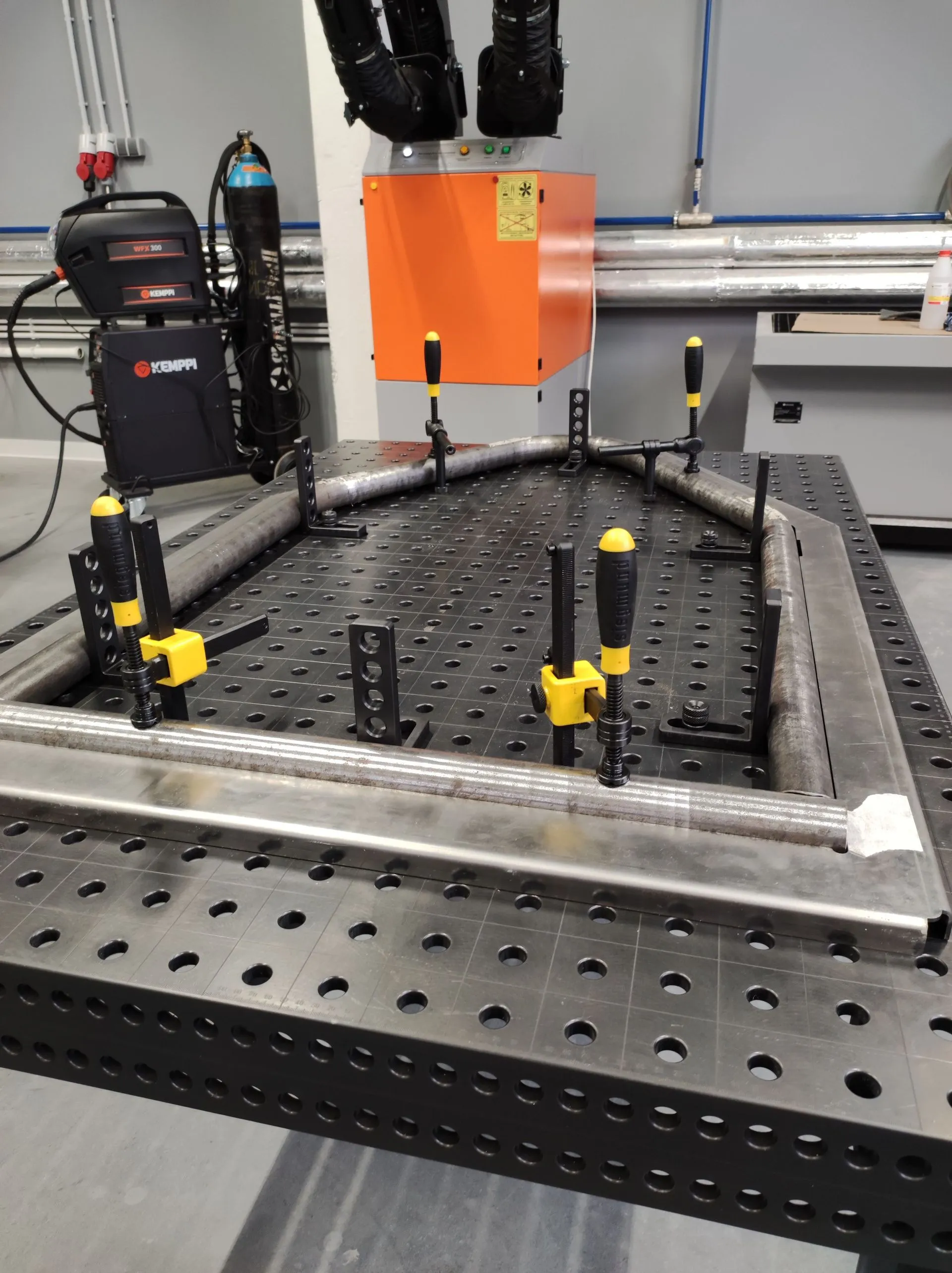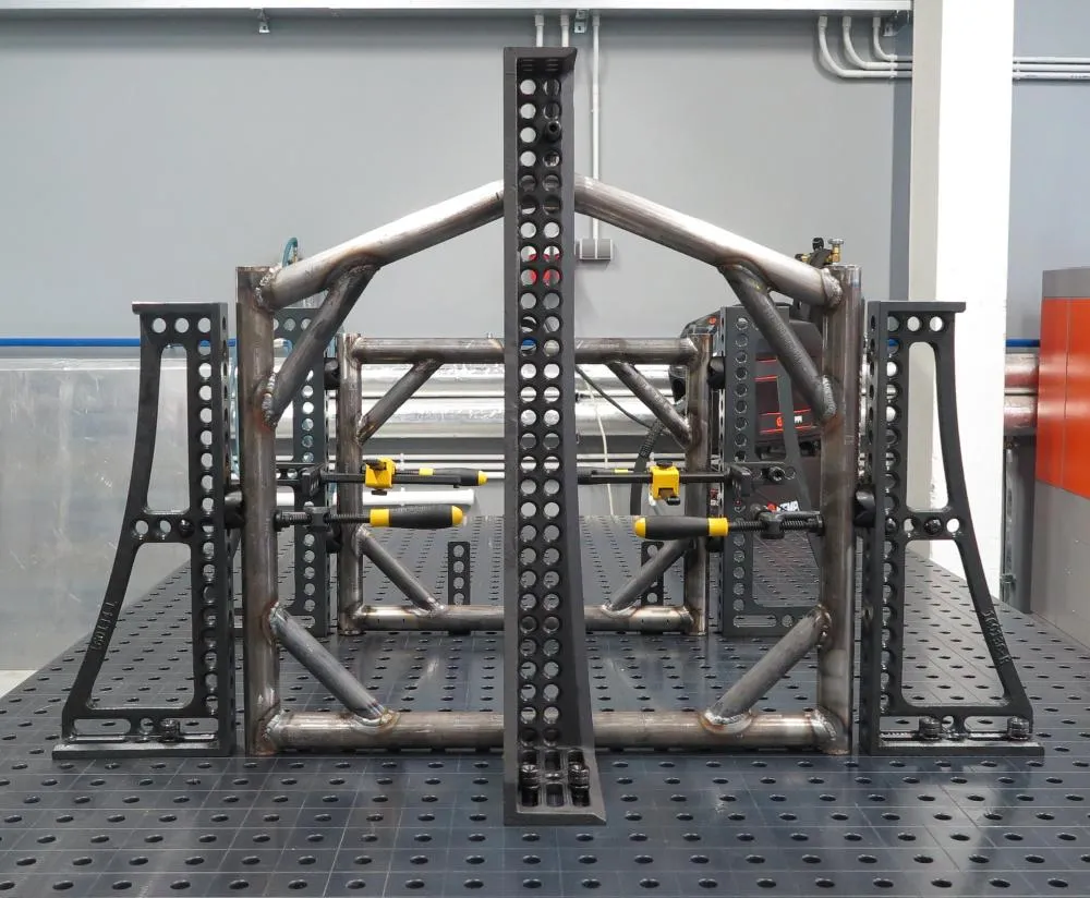 В проекте использованы столы 16 системы — два сварочных стола: 1500х1000 мм и 3000х1500 мм с полным набором оснастки.