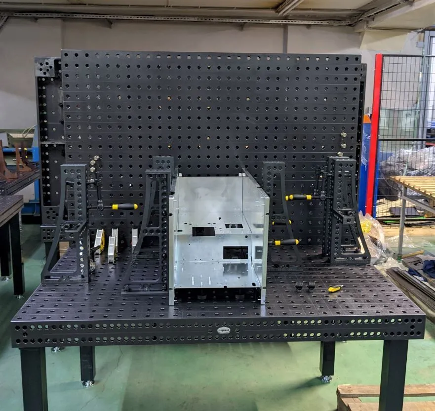 На производстве по сборке постаматов, терминалов и вендинговых аппаратов, была установлена сборочно-сварочная система и оснастка к ней.