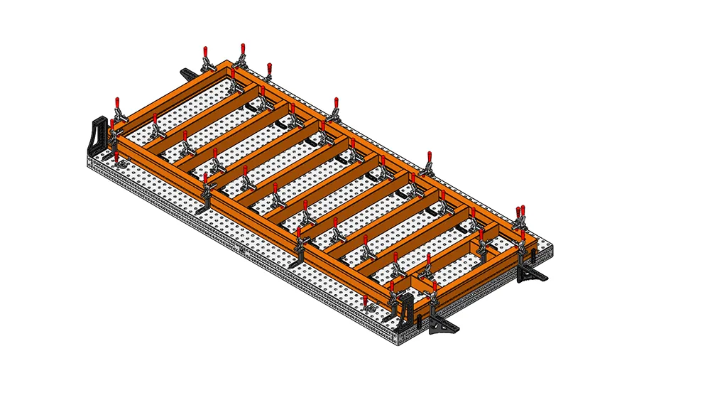 Для сварки щитов опалубки активно используют сборочно-сварочные столы Siegmund 16 системы, ведь она позволяет работать с опалубкой разных размеров и использовать специальные элементы при большой серийности.